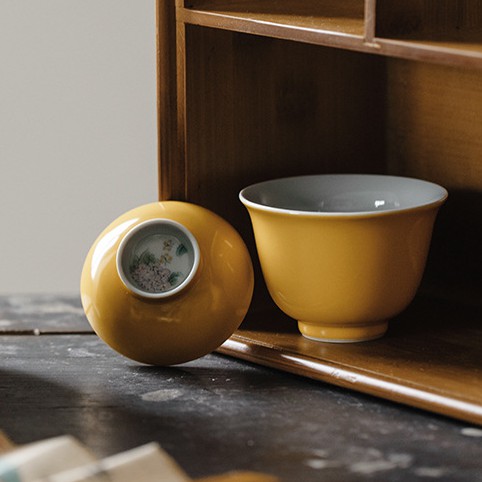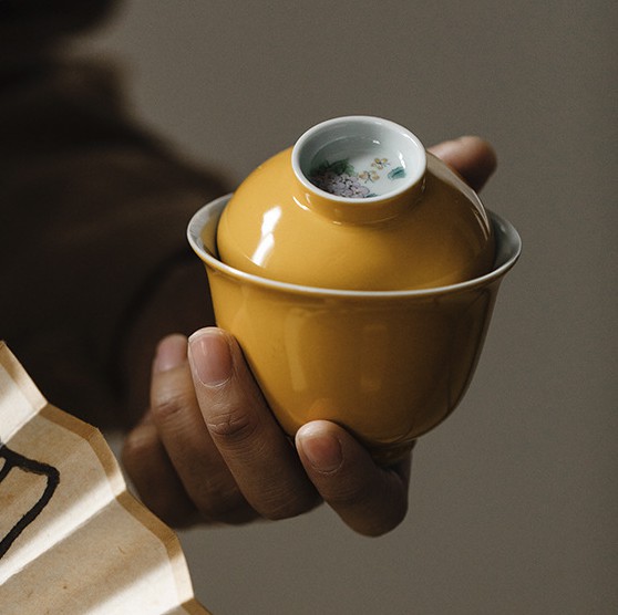 无落柘黄君安盖碗.南怀