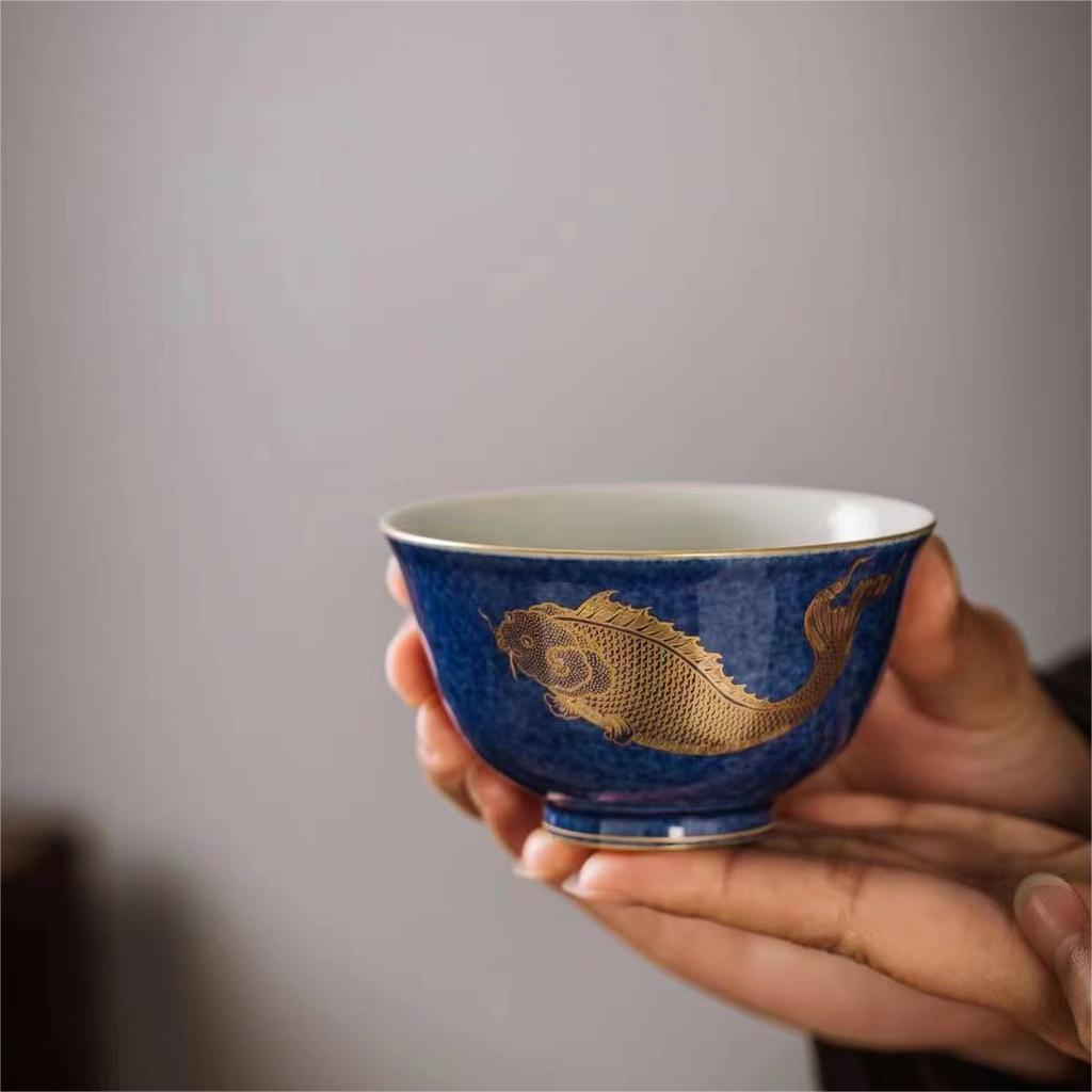 玉赋堂.洒蓝鲲鱼杯