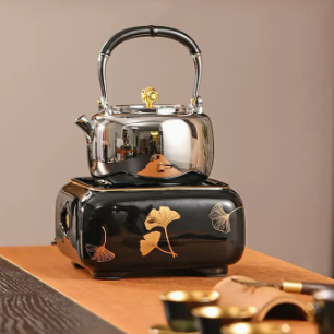 莺歌烧-四方银杏黑底电陶炉